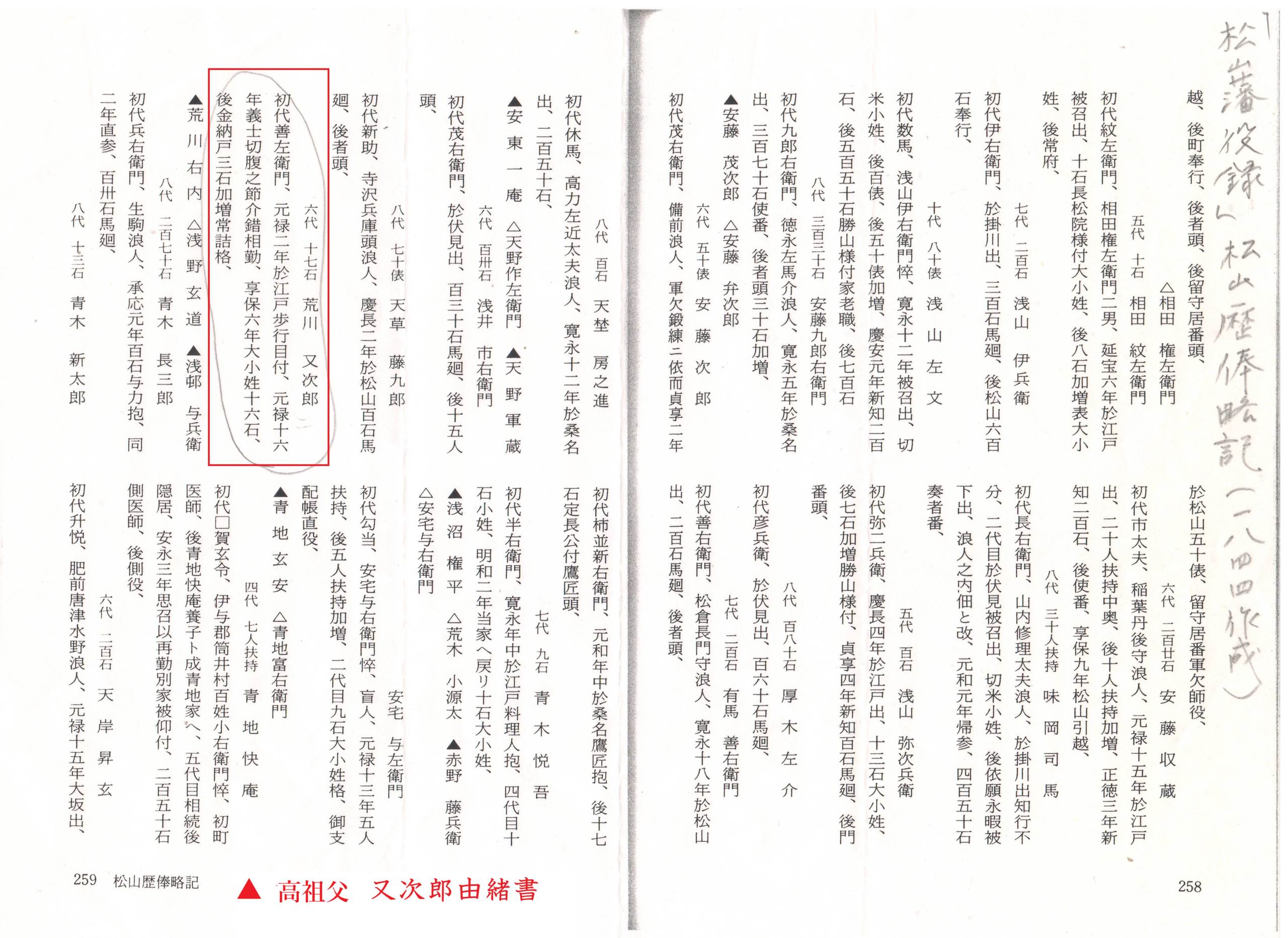 荒川家古文書アーカイブ 松山城天守 2026.01.31 伊予松山藩「荒川家」古文書(復刻版) ページコンテンツ (目次)『懐中便覧松山役録』(宝永元年)『松山暦俸略記』(弘化年間)『幕末松山藩御役録』(安政6年)『赤穂御預人始末』(作成時期?)『豫松御代鑑』(作成時期?) 『懐中便覧松山役録』(宝永元年) 『松山暦俸略記』(弘化年間) 『幕末松山藩御役録』(安政6年) 『赤穂御預人始末』(作成時期?) 『豫松御代鑑』(作成時期?)
